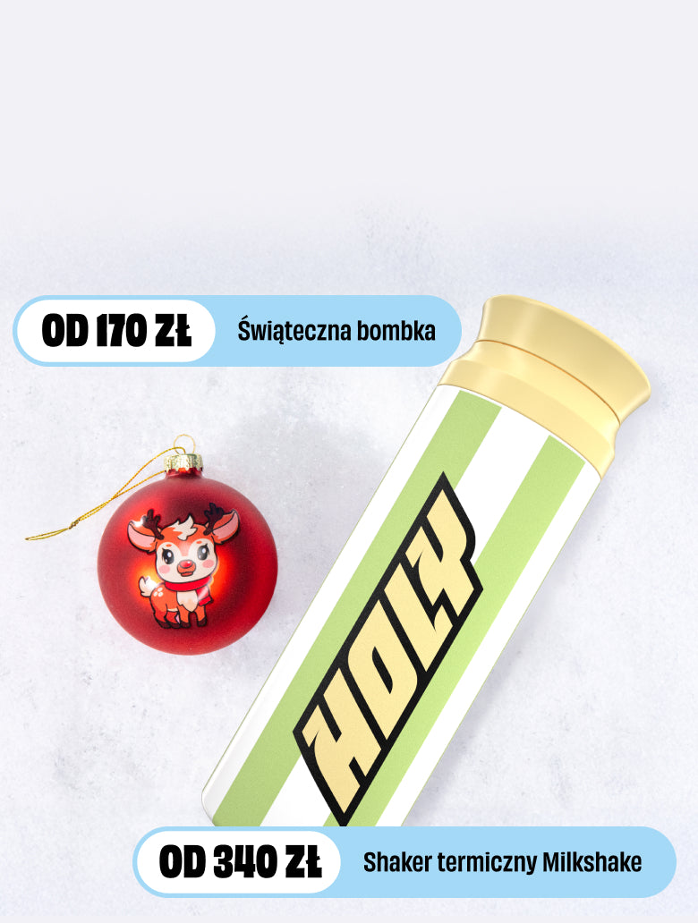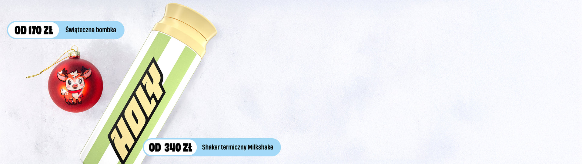 Przy zamówieniu powyżej 170 zł otrzymasz świąteczną bombkę, a powyżej 340 zł zgarniesz shaker termiczny Milkshake – idealny do naszego nowego świątecznego smaku!